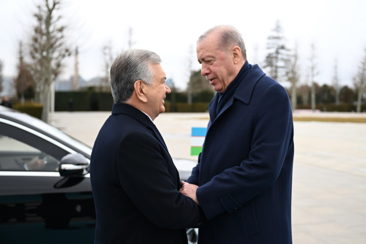 Davlatimiz rahbarini Turkiya Respublikasi Prezidenti Rejep Tayyip Erdogʻan kutib oldi.